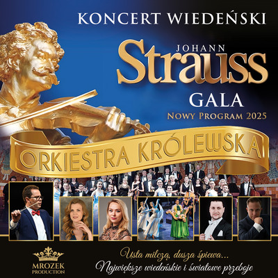 Zapraszamy Państwa w podróż do roztańczonego i magicznego Wiednia, gdzie będą rozbrzmiewać najpiękniejsze arie, duety, walce i polki Johanna Straussa, Franca Lehara, Imre Kalmana. Tegoroczny koncert w wykonaniu światowej Królewskiej Orkiestry pod dyrekcją znakomitego dyrygenta Romana Dzundzy – wieloletniego dyrygenta symfoniczno – operowego i dyrektora artystycznego Filharmonii w Ivano-Frankivsku. Artysta pełni funkcję zastępcy dyrektora artystycznego międzynarodowego projektu Ukrainian Art Song Project, jest ekspertem Ukraińskiego Funduszu Kultury oraz laureatem nagrody im. M. Pidhirianki, co świadczy o wysokiej ocenie jego wkładu w sferę życia kultury. Orkiestrze towarzyszyć będą europejskiej klasy soliści międzynarodowych scen. Wśród solistów usłyszą Państwo wyjątkową - unikalną sopranistkę Wiktorię Melnik, Studiowała śpiew operowy w Narodowej Akademii Muzycznej w Kijowie. Zadebiutowała partią Mikaeli w operze „Carmen” na scenie Lwowskiej Opery Narodowej. Wykonała tytułową rolę w operze „La Traviata” w Operze w Burgas w Bułgarii. Artystka jest laureatem i zdobywcą specjalnych nagród wykonawczych w konkursach wokalnych na Ukrainie, w Polsce, Włoszech, Niemczech, Chorwacji i Bułgarii. Katarzyna Czekanowska – sopran. Artystka jest laureatką międzynarodowych i krajowych konkursów wokalnych, m.in. Grand Prix im. S Kruszelnickiej oraz zdobywczynią pierwszej nagrody w międzynarodowym konkursie wokalnym w Cambridge 2023/Anglia. Solistka koncertuje w Polsce, Francji, Niemczech, Austrii, Belgii. Aleksander Kruczek tenor to ulubieniec publiczności i jeden z najlepszych polskich tenorów młodego pokolenia. Tenor obdarzony wyjątkową barwą głosu. Jest laureatem wielu międzynarodowych konkursów wokalnych. Solista Aleksander Kruczek to polski tenor. Ukończył Akademię Muzyczną w Katowicach i Studium Wokalno-Baletowe przy Teatrze Muzycznym w Gliwicach. Brał udział w programie kształcenia młodych talentów w Operze Narodowej. W Teatrze Muzycznym w Gliwicach występował w operetkach, takich jak "Orfeusz w piekle", "Carmen", "Noc w Wenecji", "Hrabina Marica" i "Wesoła wdówka". Współpracował z teatrami operowymi w Łodzi, Warszawie i Poznaniu. Brał udział w festiwalach muzycznych, m.in. w Festiwalu „Gloria”, Śląskim Festiwalu im. Beethovena, Festiwalu „Ave Maria”, Festiwalu Muzyki Wiedeńskiej i Letnim Festiwalu Muzycznym w Krynicy-Zdroju. Jest laureatem konkursów wokalnych. Koncertował w Belgii, Niemczech, Hollandii, Polsce, Luksemburgu, Włoszech i Francji. Yuri Hryhorasz - baryton, śpiewak operowy i musicalowy, absolwent Narodowej Akademii Muzycznej we Lwowie. Członek grupy a cappella "LaVIVo". Artysta jest gościnnym solistą Lwowskiej Opery Narodowej i Lwowskiej Filharmonii Narodowej oraz solistą Opery Wrocławskiej. Brał udział w wielu międzynarodowych projektach w wielu krajach na całym świecie: Niemcy, Szwajcaria, Hiszpania, Kanada, Stany Zjednoczony, Chiny, Hongkong. Wokalista współpracował na jednej scenie z takimi gwiazdami jak: Dennis Adu, Dirty Loops, Frank London, Anthony Strong i wieloma innymi. Artyści przeniosą słuchaczy do ojczyzny walca prezentując niezwykły kunszt wokalny i instrumentalny. Ta niezwykła gala będzie wzbogacona wirtuozerskim tańcem par tanecznych, barwnymi kreacjami i bogatą choreografią, co pozwoli na doświadczenie wielu doznań artystycznych w iście książęcym stylu. Pary taneczne to soliści Narodowego Teatru Opery i Baletu we Lwowie. W ten magiczny wieczór zabrzmią największe przeboje Króla walca Johanna Straussa takie jak uwertura z Zemsty Nietoperza, Keiser Marsz, Marsz Radezki, walc „Nad pięknym modrym Dunajem”, „Wiedeńska krew”, czy „Odgłosy wiosny” a także polki Trich Trasch, Eljen Magiar Polka, Anne Polka, Gromy i Błyskawice i wiele innych orkiestrowych szlagierów. Nie zabraknie także popisowych arii i duetów z najsłynniejszych operetek: Zemsty Nietoperza, Barona Cygańskiego, Księżniczki Czardasza, Hrabiny Maricy, Wesołej Wdówki czy Krainy Uśmiechu. Publiczność wysłucha między innymi: arie „Adeli”, „Czardasz Sylvi”, kuplety Barinkaya „Wielka sława to żart”, „Graj Cyganie”, „ Artystki z Variete”, „Brunetki Blondynki” a także duety wszechczasów, m.in. „Usta milczą dusza śpiewa”, „Jakże mam Ci wytłumaczyć”, „ Jedź do Verasdin”, „ Co się dzieje oszaleję”, „W rytm walczyka”. Nie zabraknie także sztandarowych pieśni neapolitańskich takich jak: „O sole mio”, „Funikuli-Funikula”, „O Surdato N’namurato” oraz wiele innych muzycznych niespodzianek. Koncert Wiedeński to potęga wokalu, która wzbudza entuzjazm nie tylko dzięki odmiennym możliwościom głosowym, ale także poprzez porywającą energię na scenie, która udziela się publiczności. Każdy koncert jest świętem muzyki wokalnej, a publiczność wprost uwielbia ich miły i autentyczny sceniczny wizerunek. Zapraszamy wszystkich melomanów i miłośników światowej wokalistyki w klimatyczną podróż w dobrym muzycznym stylu do przebogatego świata operetki. Koncert poprowadzi znakomity polski konferansjer Piotr Skubis, który jest zakochany w przebogatym świecie operetki.